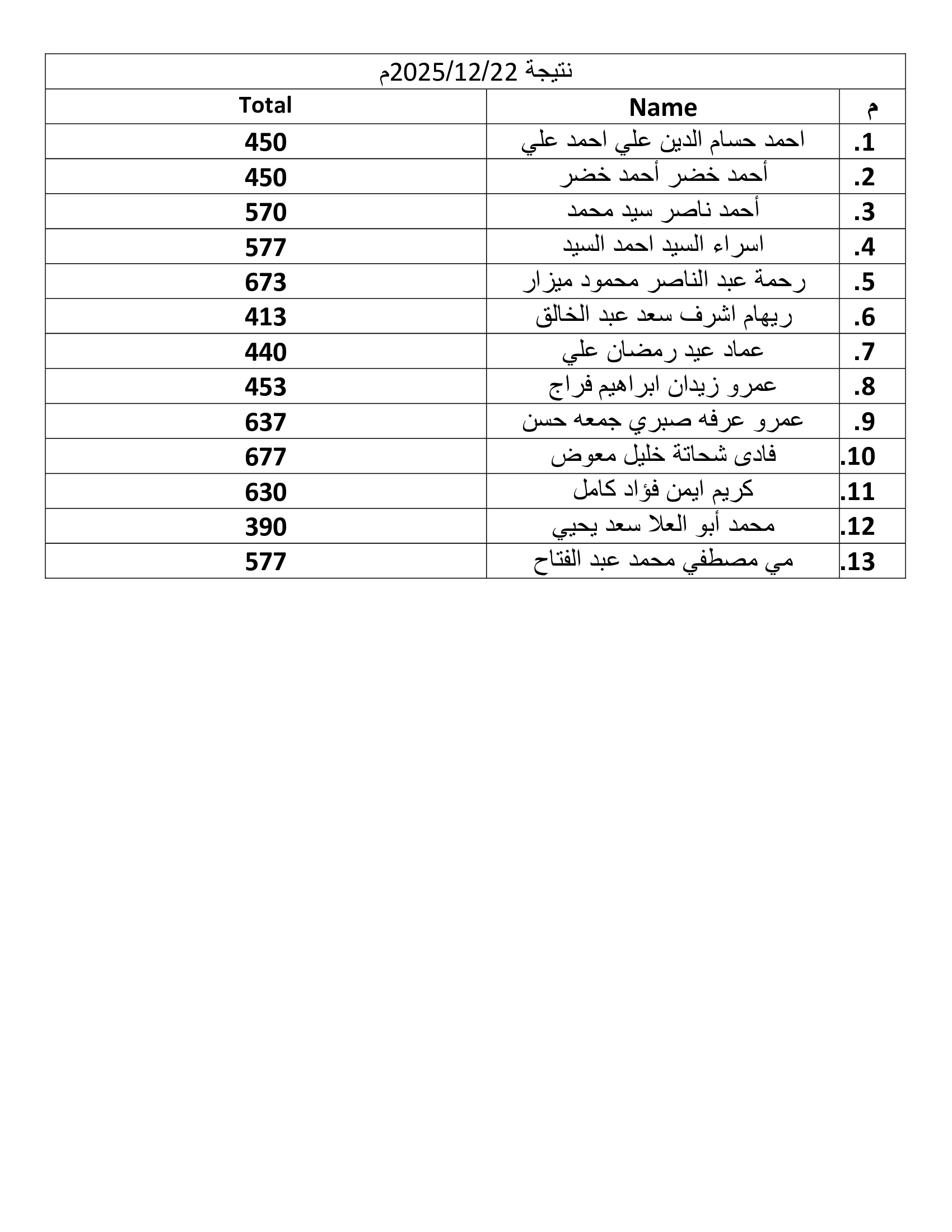 نتيجة الاختبار الأكاديمي22/12/2025م