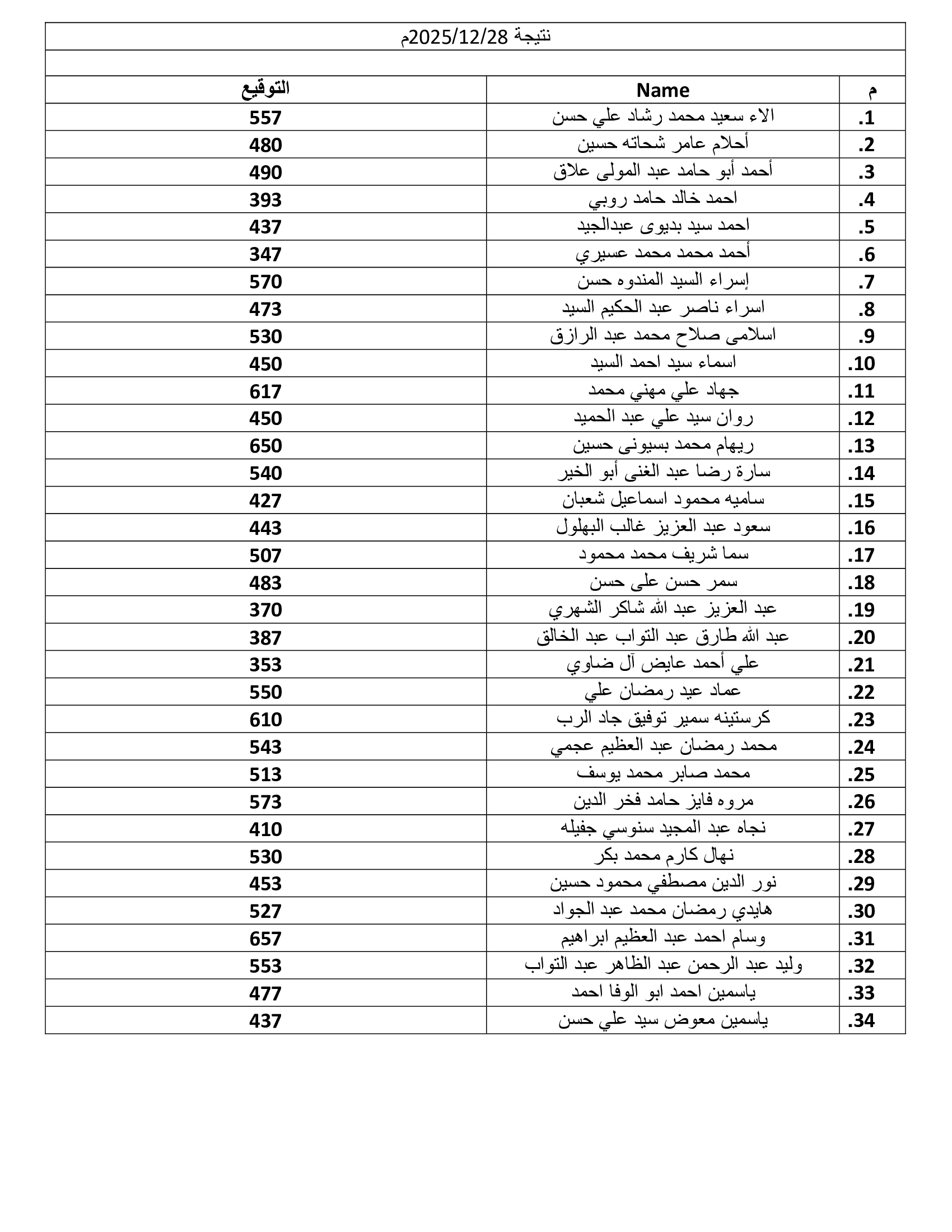 نتيجة الاختبار الأكاديمي 28 ديسمبر2025م
