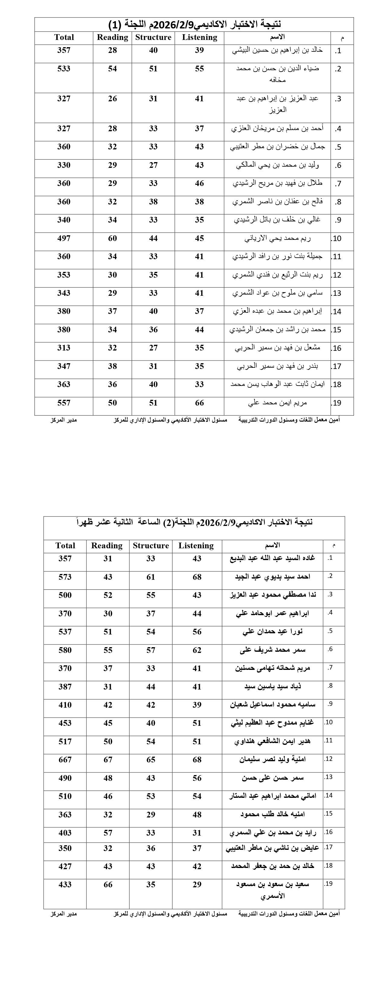نتيجة لجنة (1) اختبار اكاديمي بدون دورة 24-2-2026