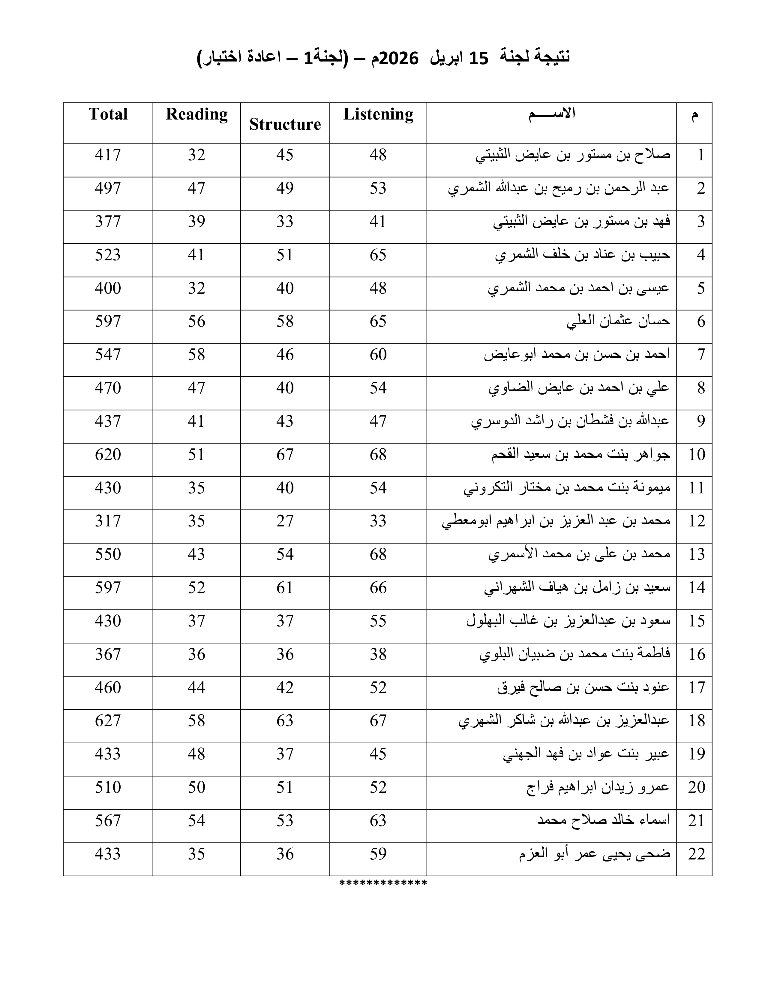 نتيجة لجنة اعادة اختبار 15 ابريل 2026